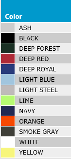 | Available Colors | Sample in ‘Light Blue’ | Sample in ‘Deep Royal’-CFA |
