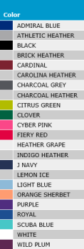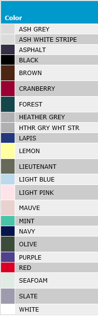 | Available Colors | Sample in ‘Admiral Blue’ | Sample in ‘Wild Plum’ |
